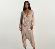 Long Sleeve Reversible Loose Shoulder Open V Top 2 pocket Harem drawstring pants with cuff tie